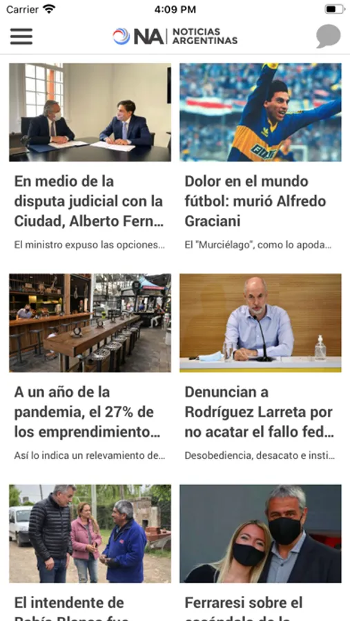 "Noticias Argentinas" mas conocida como "NA" brinda toda la información periodística especializada de primera línea, con todo lo que sucede en Argentina y en el mundo. Con el respaldo y la trayectoria de 50 años funcionando en el mercado como agencia de noticas, este año lanza su nueva plataforma digital, aputada al la basta audiencia online y reforzando su acercamiento a los medios de comunicación internacionales que la consideran un referente, al momento de buscar primicias, informes y fotografías exclusivas.