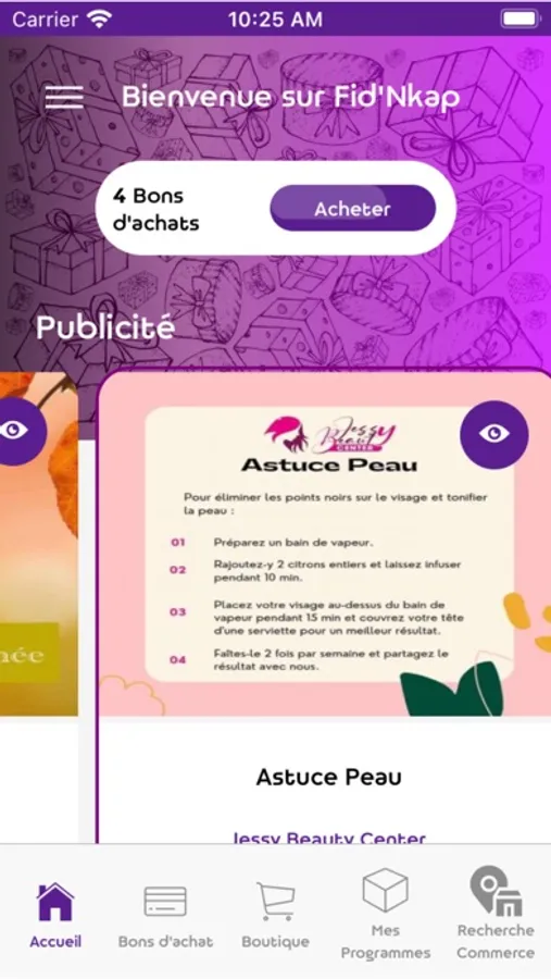 L'application Fid'Nkap est une plate-forme de fidélisation clientèle multicanal qui vous permet de bénéficier des avantages proposés par les commerces, instituts et établissements de votre quotidien.