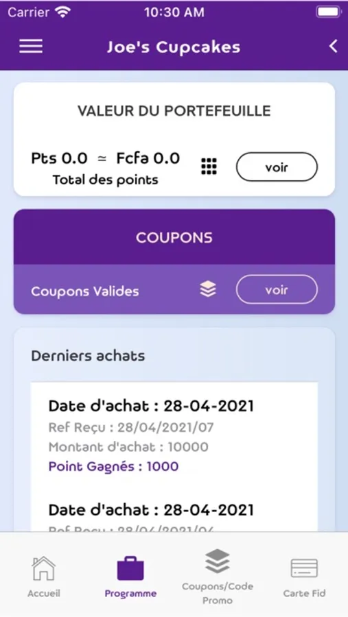 [ ] Cumuler des points après chaque achat chez un des partenaires