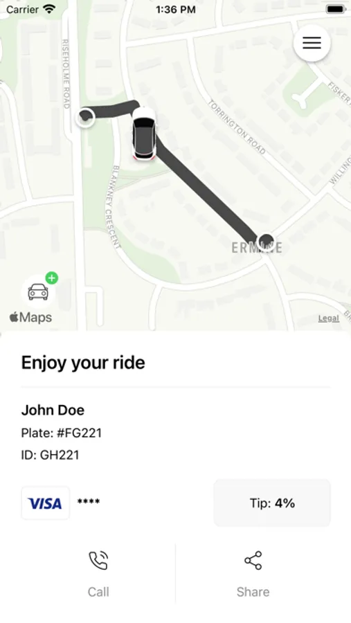 - See your driver's and vehicle details and track their arrival on the map.