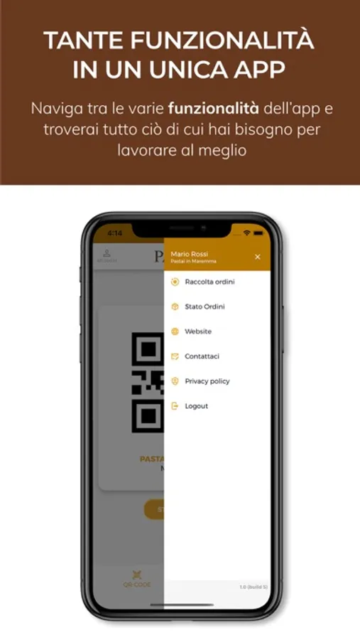 Grazie alle sue funzionalità potrai avere il tuo QR code personale, ricevere notifiche di comunicati e visualizzare lo stato dei tuoi ordini.