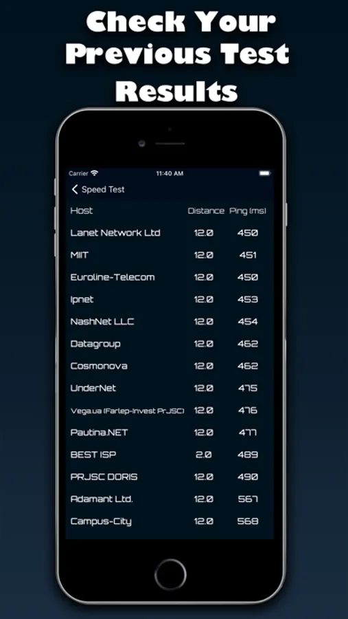 • List your previous speed test