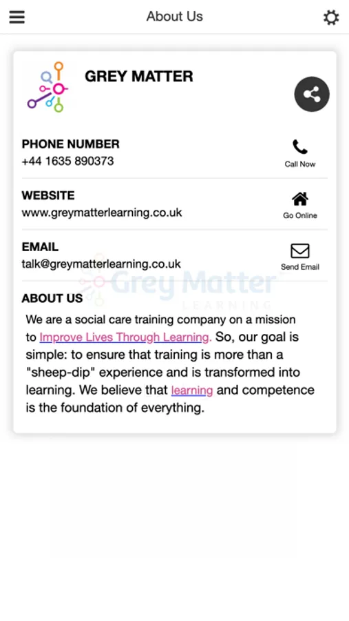 Access Grey Matter Learning’s free courses now, check out our upcoming learning events or access the help centre, all within the app.