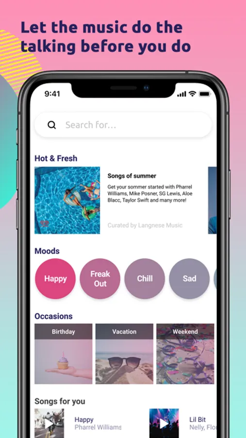 • Search for a song, or choose a song out of our playlists fitting to your mood or an occasion to get started