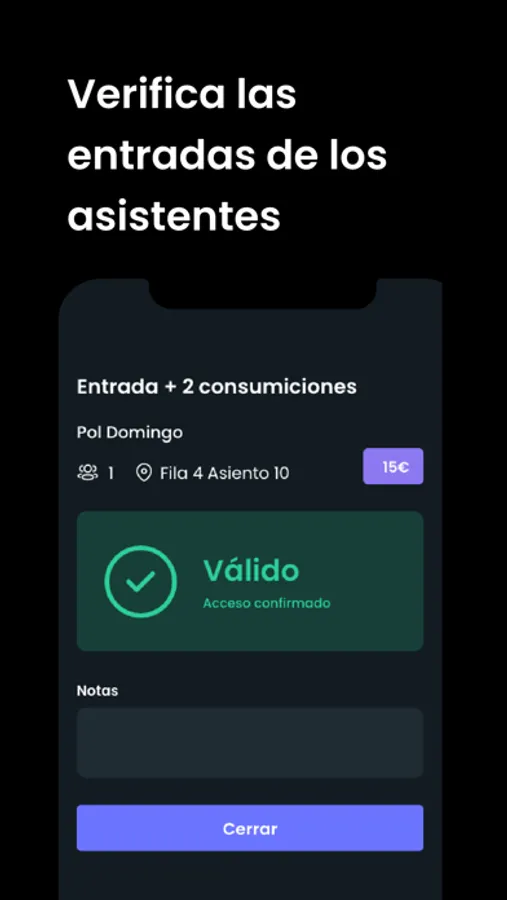 Escanea códigos QR de tickets impresos o en la pantalla de cualquier dispositivo desde nuestra app de ticket scanner. Ideal para la gestión de accesos en eventos de gran afluencia.