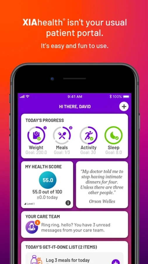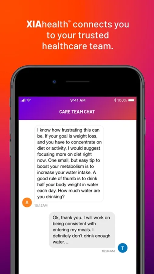- Connection with your care team. You don’t have to try to achieve your goals alone. Your care team is available through XIAhealth® to share their knowledge and support you along the way!