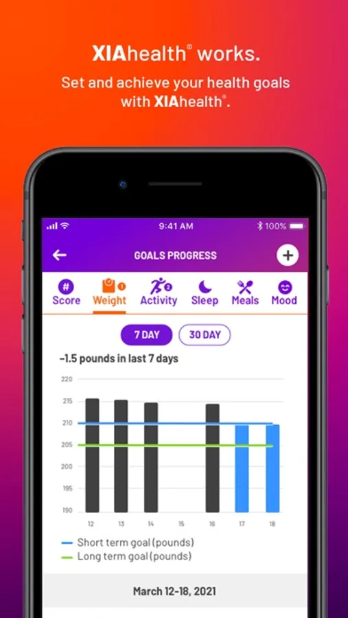 Using XIAhealth®, you will set long and short term health goals and track your progress towards those goals over time. Don’t worry though, you won’t be on this journey alone! XIAhealth® provides a direct secure connection between you and your trusted care team. They can see the progress you are making towards your goals, help you set new incremental goals as you achieve your old ones, and provide support along the way. Through XIAhealth®, you can message or chat with your care team at any time with questions or if you just need encouragement! XIAhealth® will provide tips, help you keep your priorities in front of you, connect to your favorite health and fitness devices to automatically log progress towards goals, summarize your progress for you, and recognize your achievements as you advance towards a healthier version of yourself!