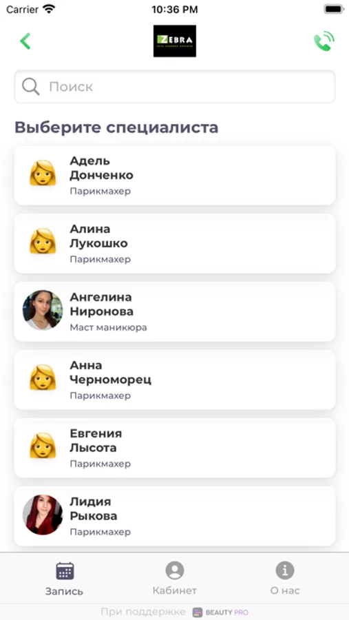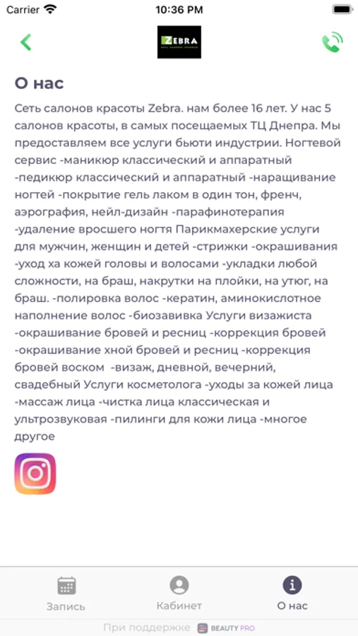 The client's personal account will show information about your visits, the program will also allow you to register in the salon and leave feedback after the visit.