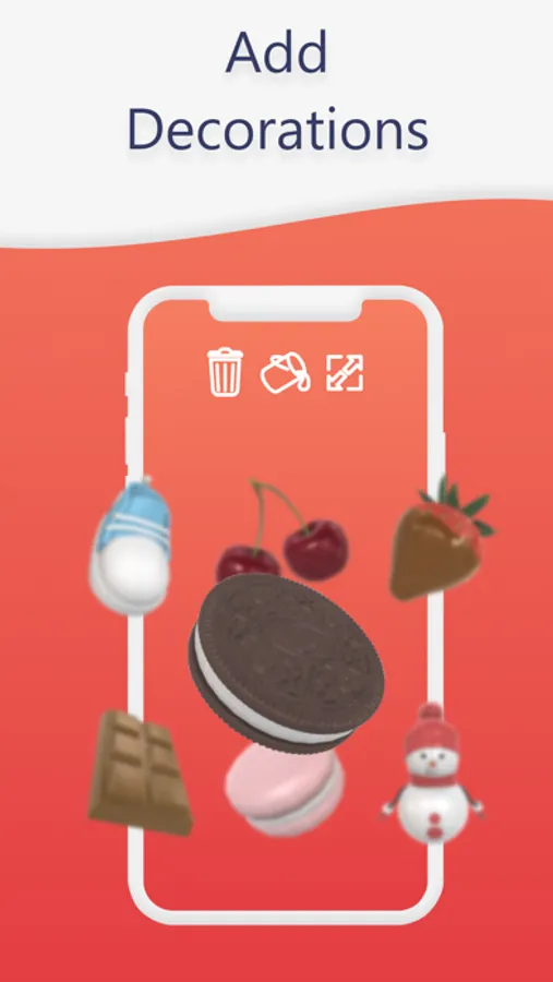 - Choose from a large variety of decorations such as flowers and place them freely on your creation.