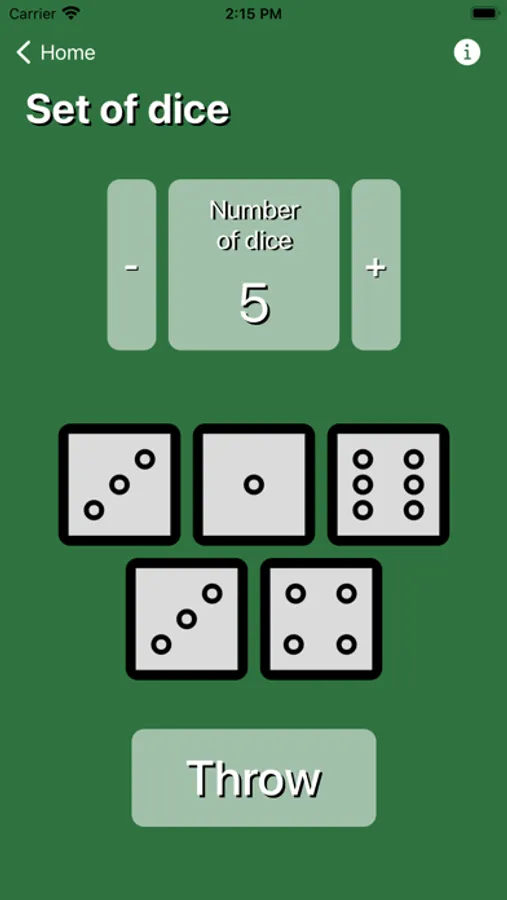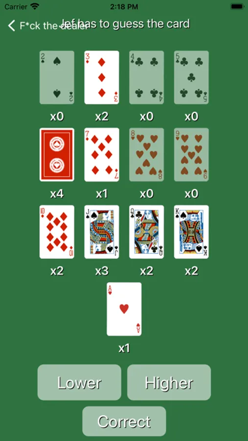it contains games like **** the dealer, Mexico, draw the queen, higher / lower and it has useful extra's like up to 6 dices you can throw, a deck of cards with 52 cards in it to play circle of death or something else etc.