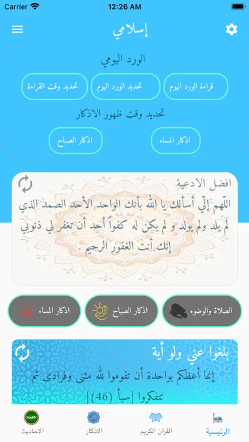 تطبيق اسلامي شامل كل ما يخص المسلم من قران كريم واذكار واحاديث وكل ما يخص اموار الصلاة والوضوء.