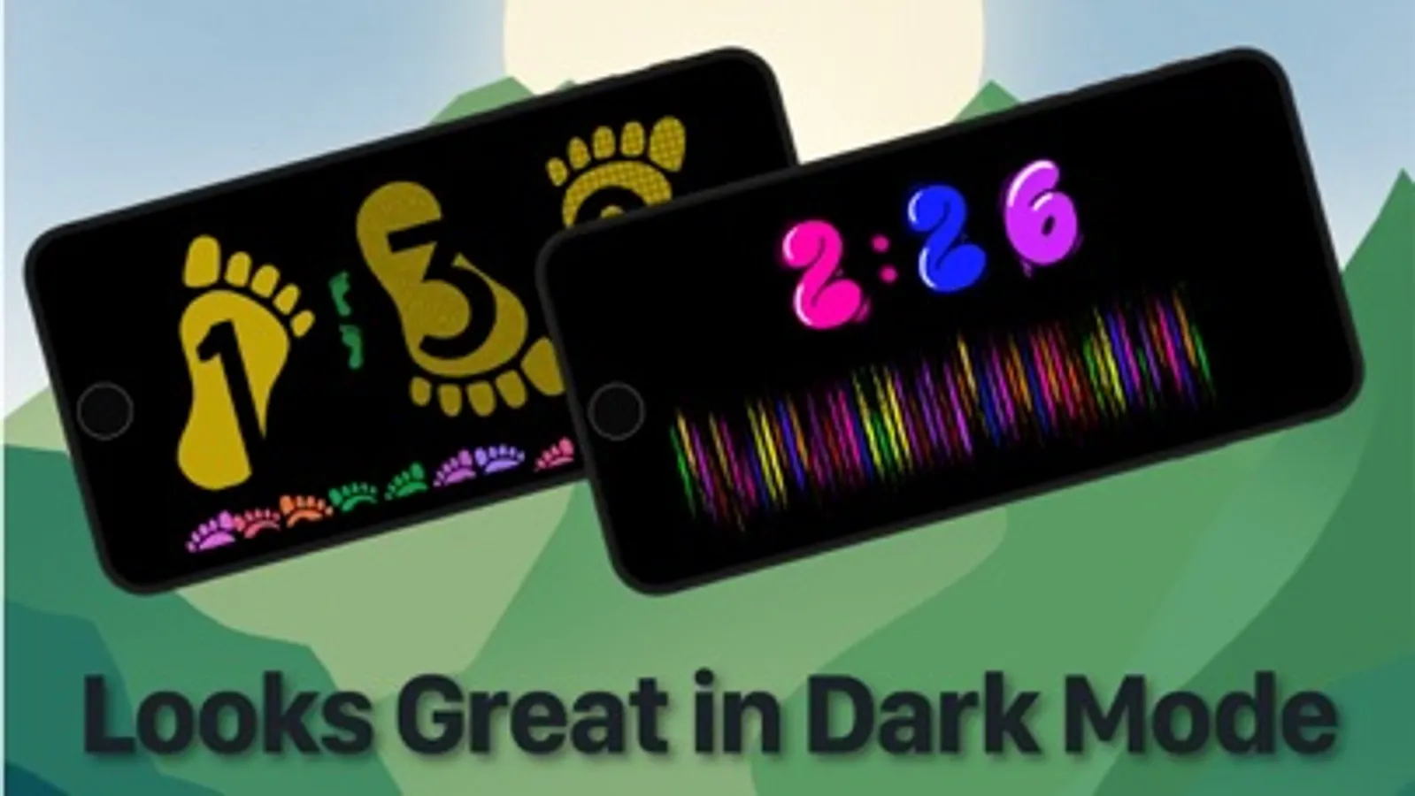 Full-screen numbers are the main characters, with an optional seconds crawler that marches across the bottom of the screen. It's always easy at a glance to tell what time it is and where you are in this minute.