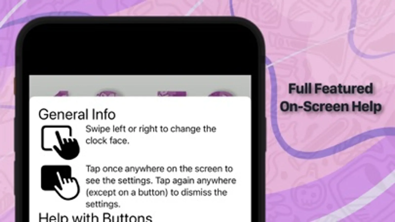 Swipe right and left to change the style and colors of Clockinator's face. Swipe up and down to show or hide the seconds. Tap once to show more settings and help.