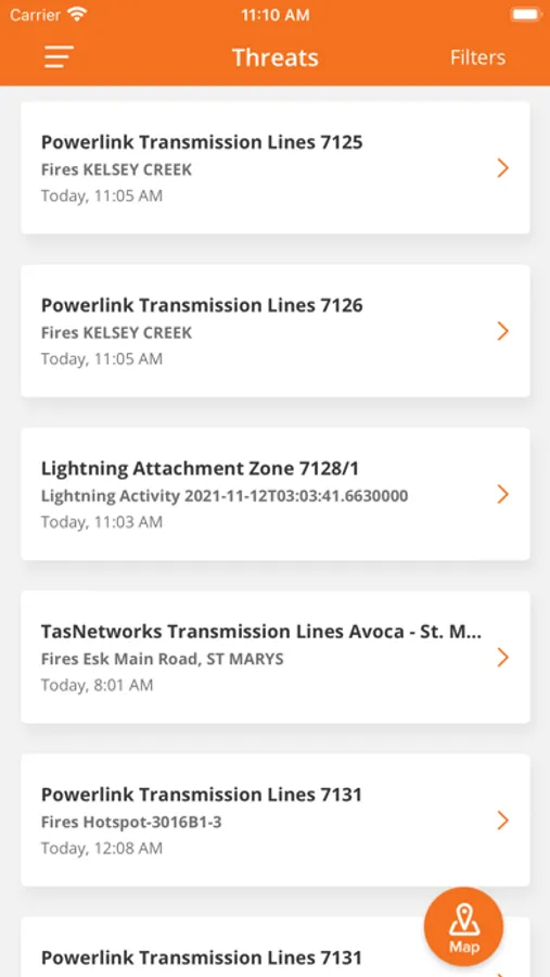 - threat list showing you current threats affecting your assets