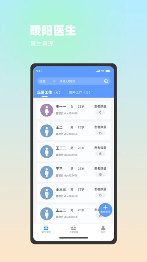 暖阳医生是一款服务于医生的工作型app,医生可以通过暖阳医生管理其他用户的使用权限,实时查看患者的治疗进展和相关数据,并根据患者的状态变化作出对应操作。暖阳医生可以帮助医生节省工作时间,实现高效化远程办公。