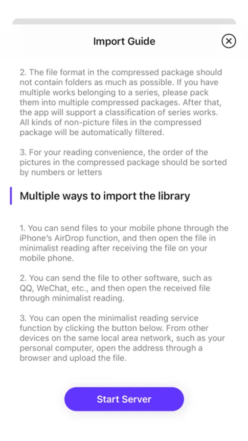 支持zip,rar,7z等多种常见压缩包格式,可以通过局域网,下载等多种方式导入各类离线漫画包
