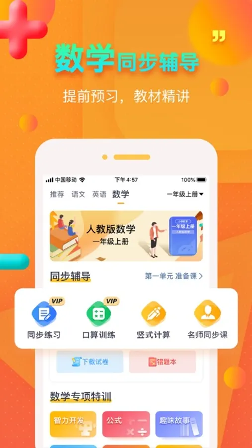 同步辅导:1-6年级的课本同步练习,口算,竖式计算,更有名师同步视频讲解。