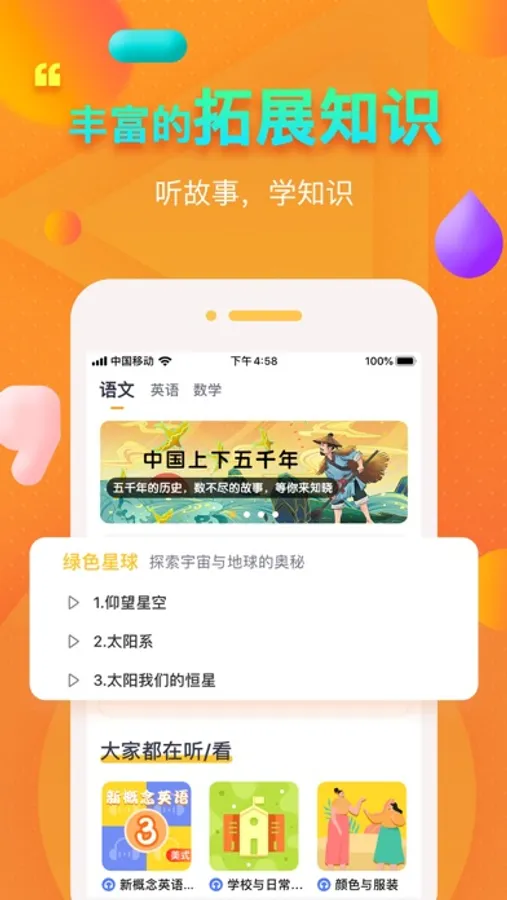 启发兴趣探索,帮助青少年丰富知识、开拓视野,海量有声读物,免费提供学习。