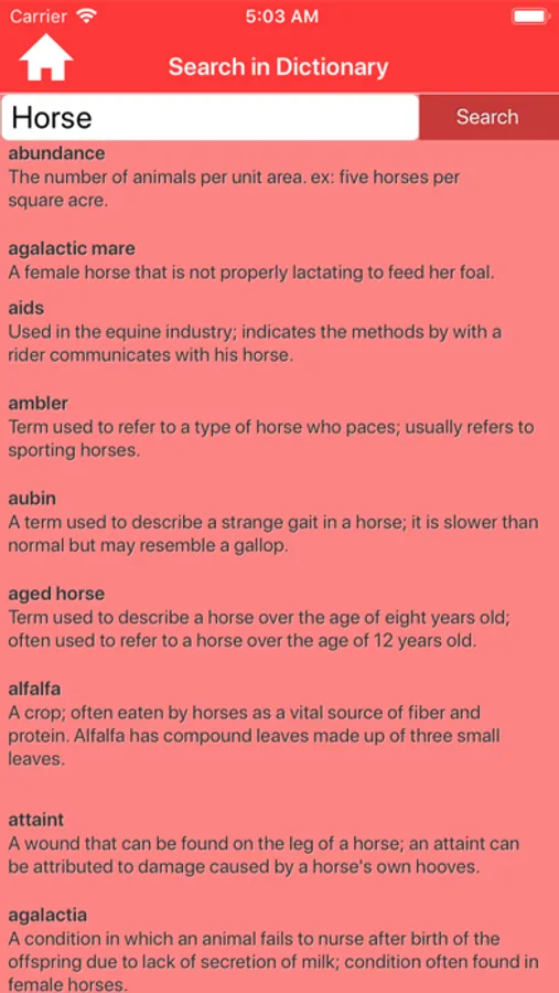 This app is a reference that contains an alphabetical list of veterinary terms.