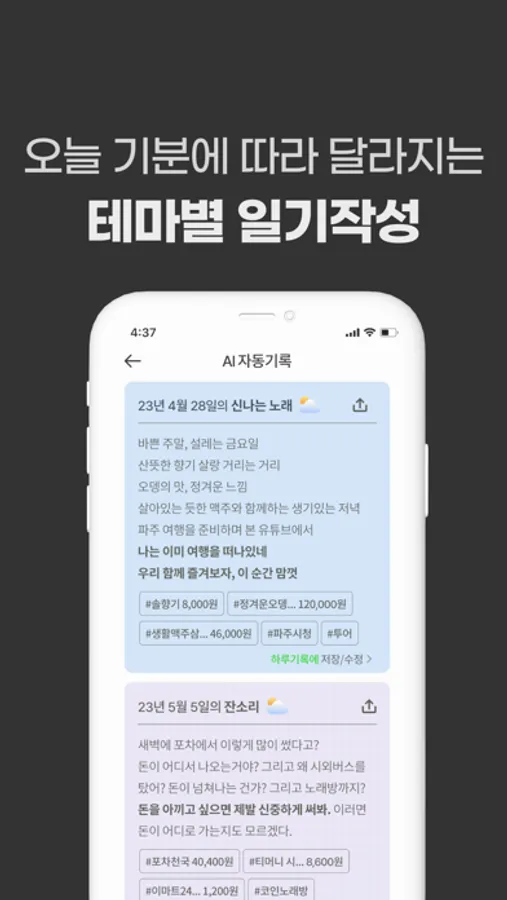내 기분 따라 테마 따라 일상을 재미있게 기록해보세요.
