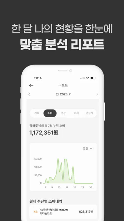 소비, 자산, 투자, 보험 등도 한번에 관리할 수 있어요.