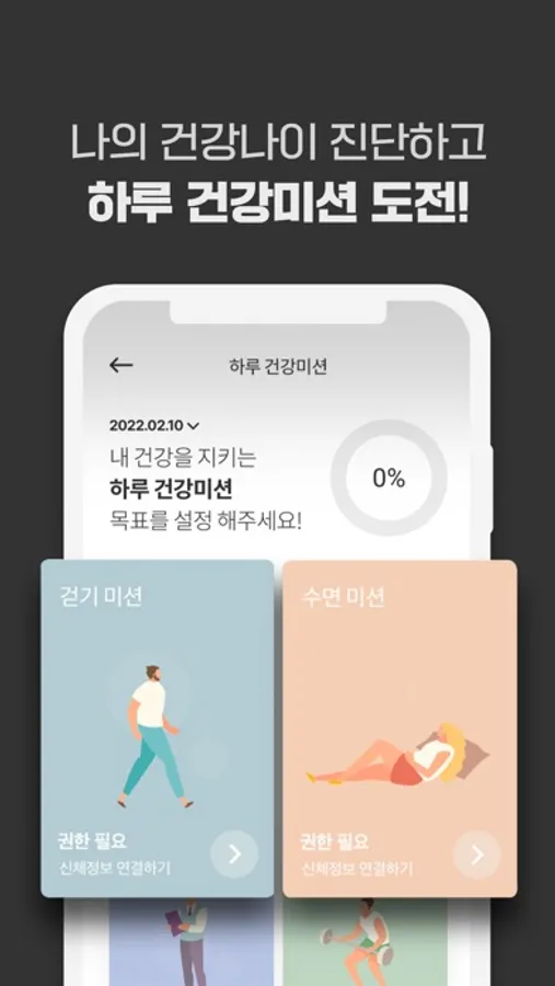 셀프 건강진단하고, 하루 건강미션을 통해 관리해요.