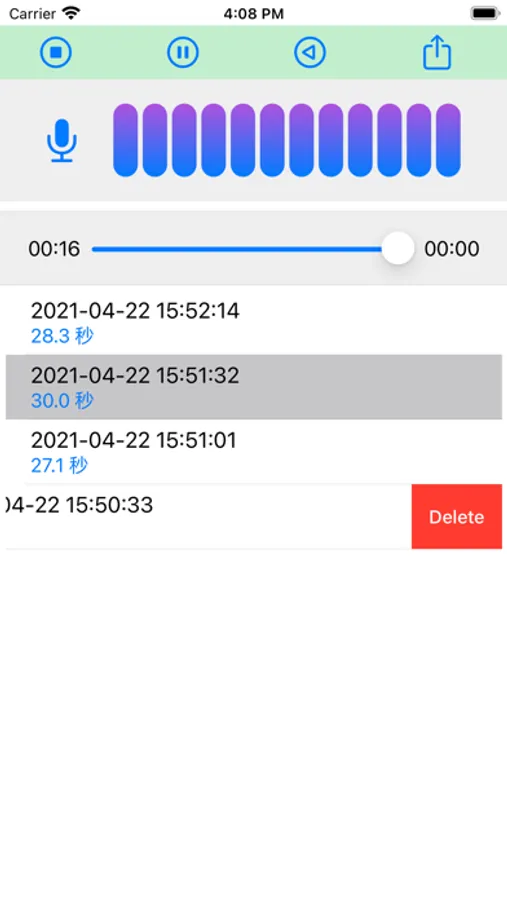 随时可以播放录音, 播放时显示进度, 并且有停止, 暂停, 继续等功能.