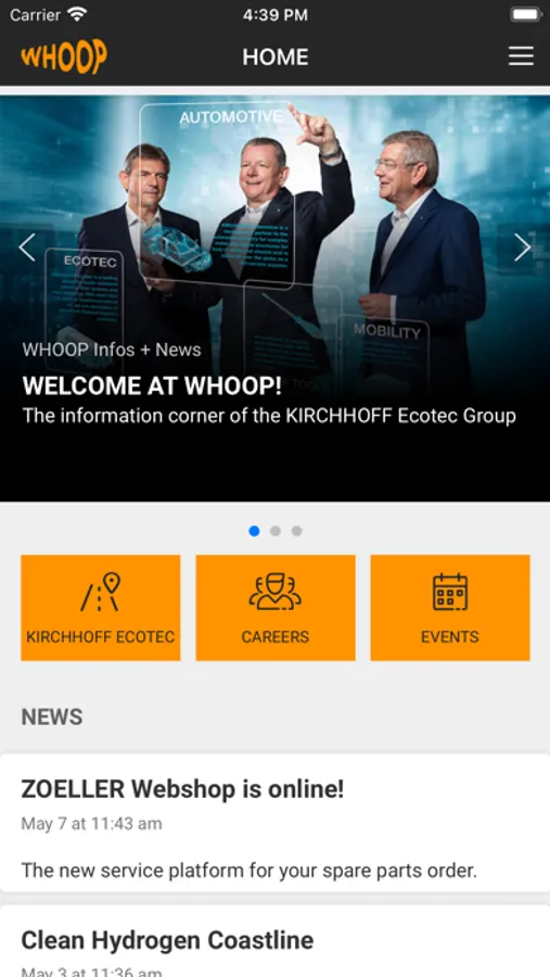 In our app, customers, partners, employees and interested users will find general information and news about the companies of the KIRCHHOFF Ecotec family, as well as job vacancies and an event calendar. Keep up to date with the latest news about the KIRCHHOFF Ecotec family and what keeps us moving.