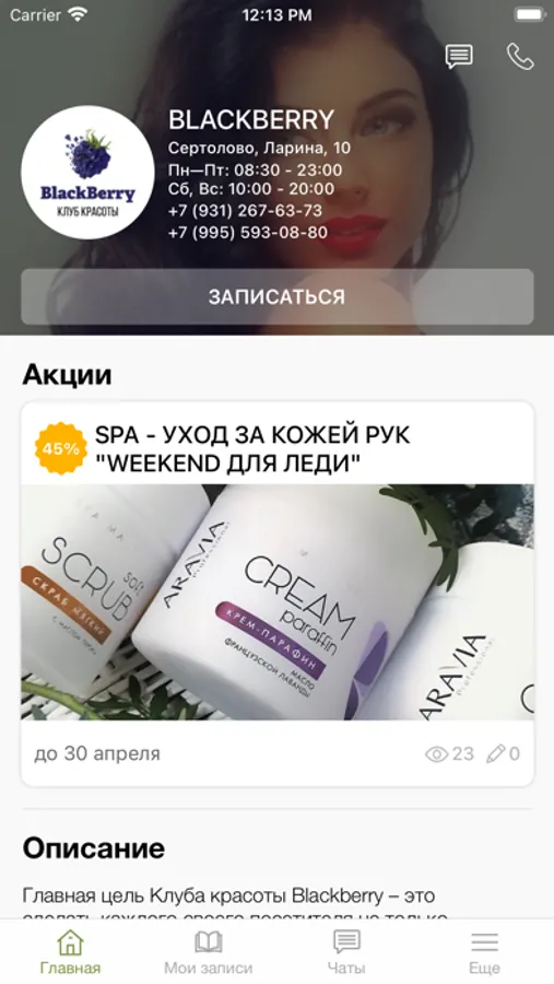 Официальное мобильное приложение первого маникюрного клуба в Сертолово BlackBerry beauty club.