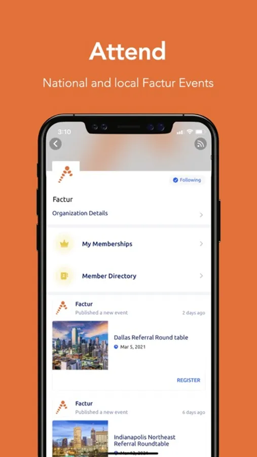 Factur app gives you a new way to engage, network and receive important information about your events, memberships and more even when meeting in person is not possible. Get the most out of your events and maximize your membership benefits with an all-in-one engagement app.