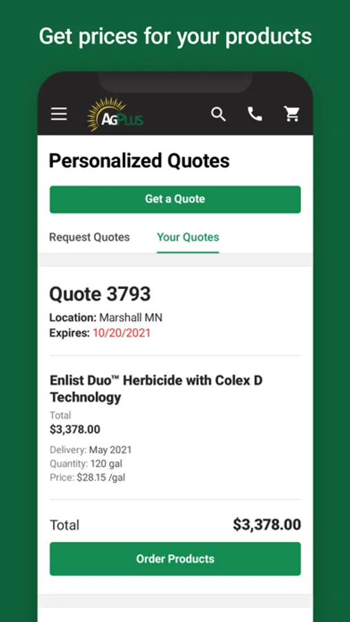 Find prices and availability for all your products in one place. Build your input list for the upcoming season and request pricing from our team.