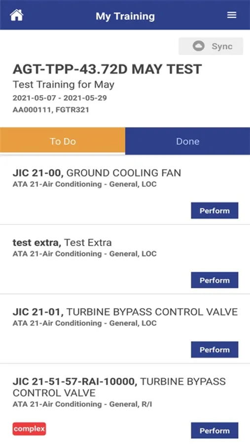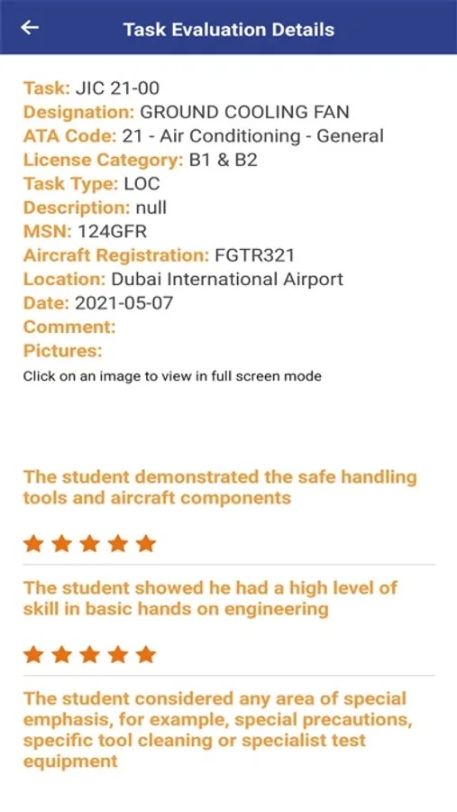 AMS Training Task Recording enables aircraft engineers to record their task during type rating practical sessions. Type of activity and task, ATA code, license, date, duration to complete the task and pictures are recorded using pre-populated fields in less than a minute. It is transmitted to the training instructor for review and assessment.