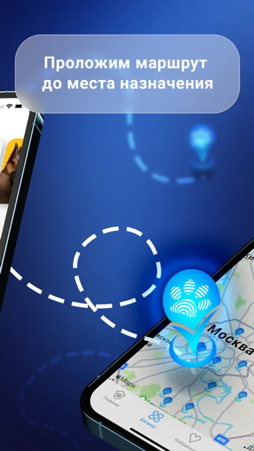 Приложение позволяет проложить маршрут до ближайшей и интересующей вас целевой точки на основных видах транспорта.