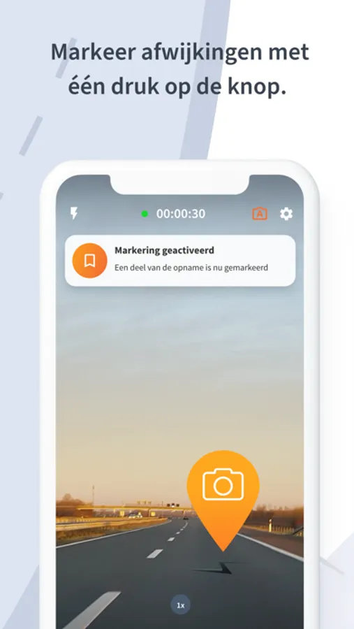 Alle app-gebruikers maken tijdens hun ritten automatisch om de 20 meter foto’s van de weg en dankzij de AutoModus rijd je ongestoord. Met 1 druk op de knop registreer je een afwijking of calamiteit.
