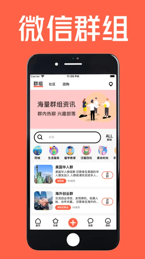 热门群组,发现海外优质微信群组,加入组织,拓展人脉。