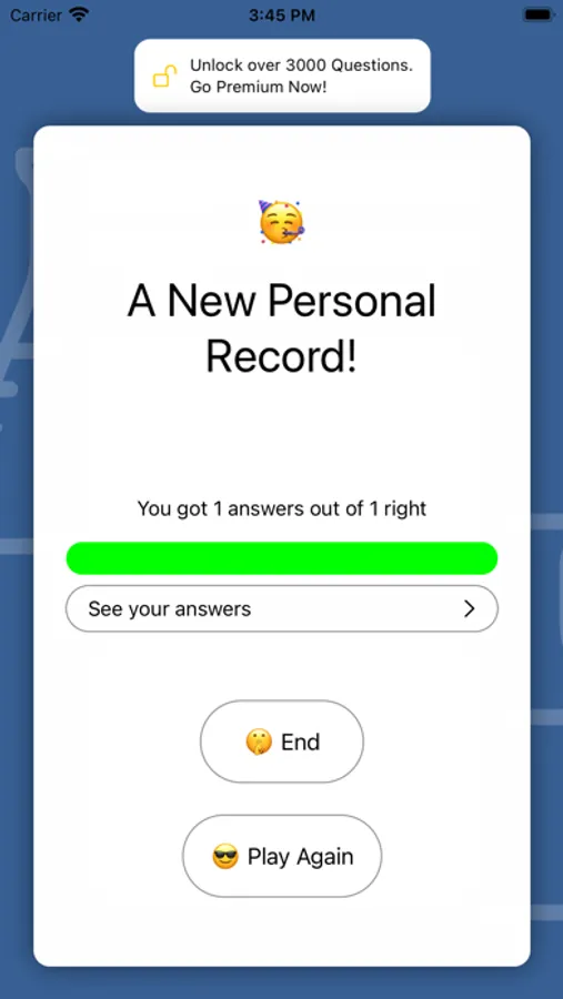 - Endless mode: Test your knowledge on your terms - select which categories you want to study and see how far you get with 5 lives!