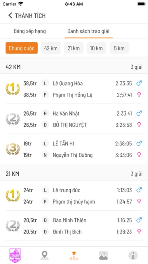 +) Cập nhật hình ảnh và thành tích cá nhân khi thi đấu nhanh nhất
