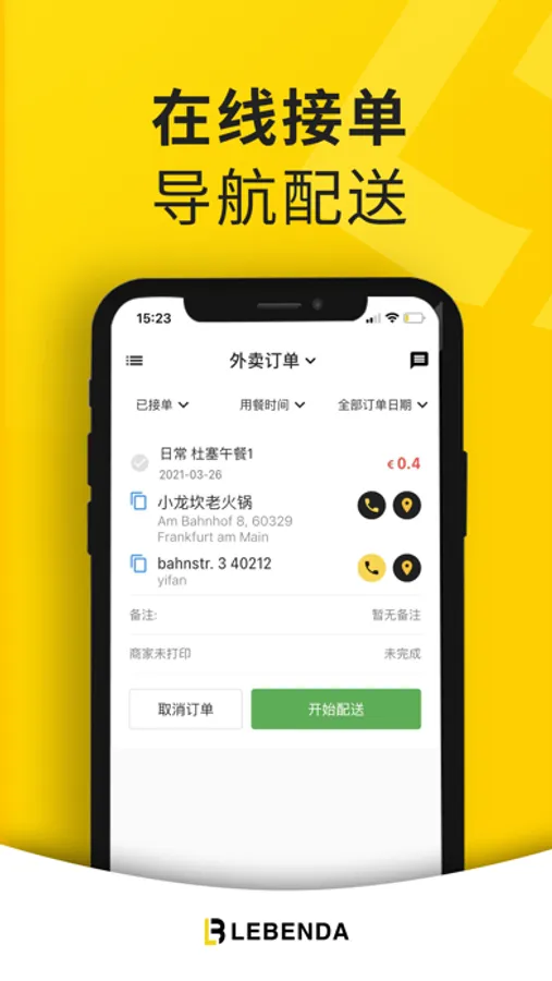 乐本车手是一款智能接单软件,可以和注册为乐本车手,一起为德国 荷兰 比利时 卢森堡等地提供外卖超市 闪送跑腿等服务