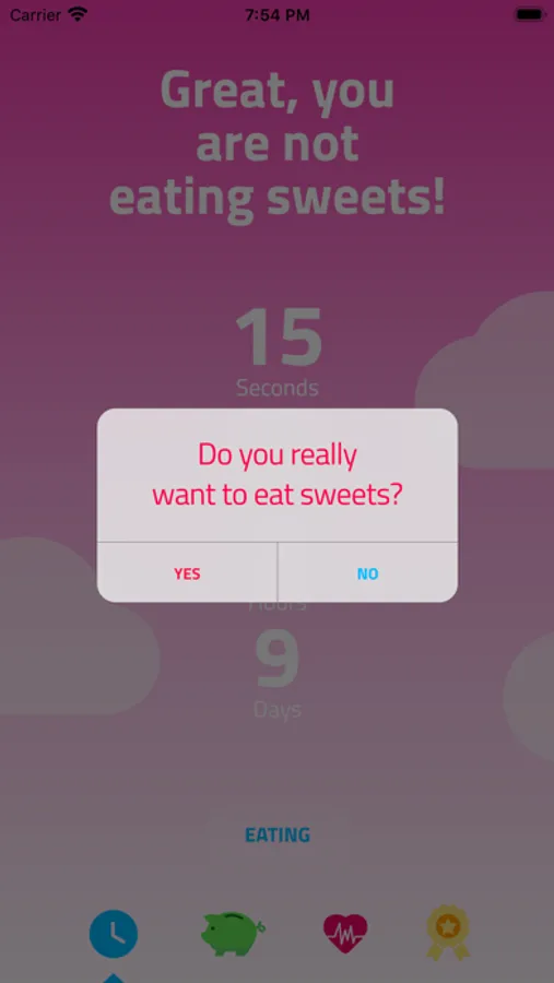 Thanks to the push notification, you will always be rewarded to stop eating sweets.