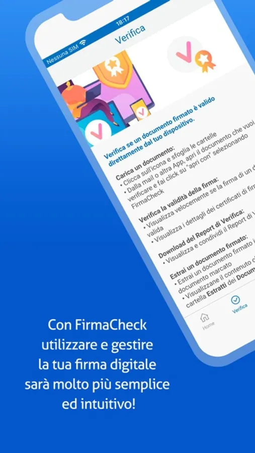 Consente, inoltre, di verificare la validità della firma e della marca apposte su qualsiasi documento.