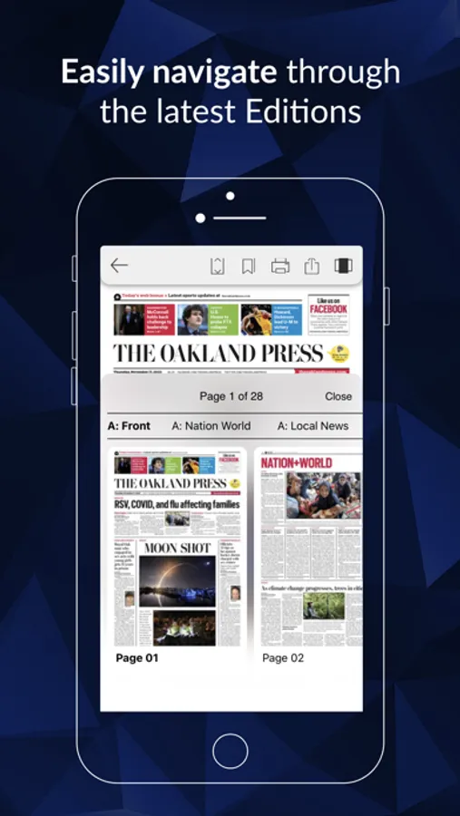 The Oakland Press e-Edition app lets readers access their favorite paper on an iOS device with all the stories, ads and photos shown exactly as it appears in print. The app users iOS multi-touch screen features to provide fast and easy navigation and natural paper-linke reading experience. Flip pages and drill down to individual stories