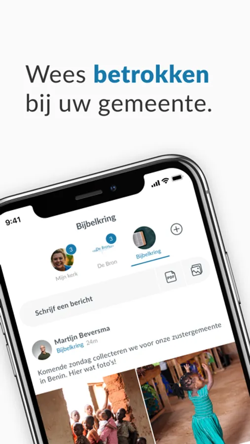 Dankzij onze unieke groepenstructuur helpen wij kerken beter te communiceren. Met de hele gemeenschap, maar ook onderling. U kunt zelf groepen toevoegen en mensen daarvoor uitnodigen. Een slimme timeline zorgt er voor dat iedere gebruiker persoonlijke en relevante informatie ziet.