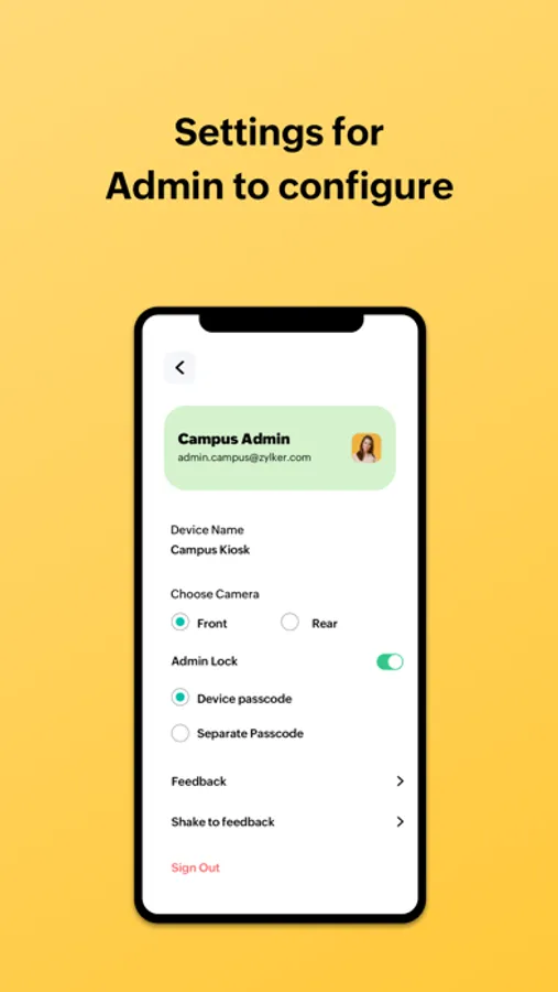 It can be a warehouse or a construction site, Kiosk's AI technology captures the image and auto-verifies with the employee's profile ID, making your workplace accessible to only authorized employees. All you have to do is simply run the companion app on any internet-enabled device or tablet and link it to your existing Zoho People account.