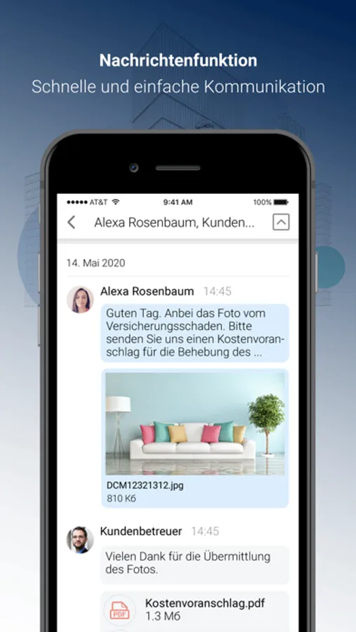 - Direkte Nachrichtenfunktion, um mit Ihrem Berater in Kontakt zu treten