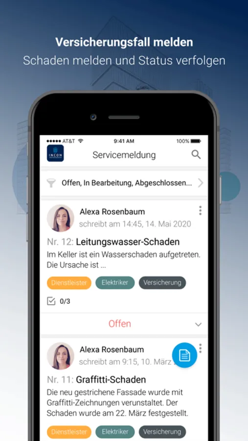 - Online Meldung von Schäden und Live-Verfolgung des aktuellen Bearbeitungsstatus