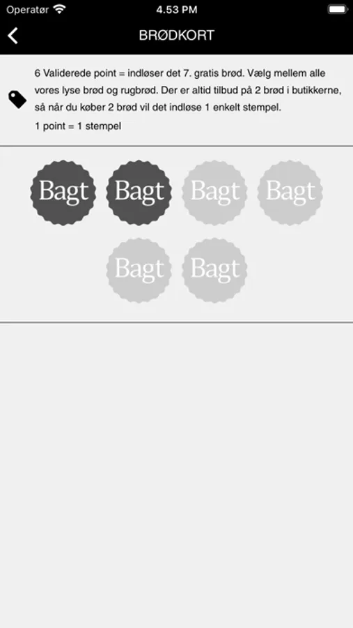 Med app'en slipper du også for de mange fysiske stempelkort, der f.eks. giver dig den 7. kaffe eller brød gratis. På app'en har vi nemlig samlet alle dine kort, så du aldrig kommer til at glemme dit stempelkort derhjemme.