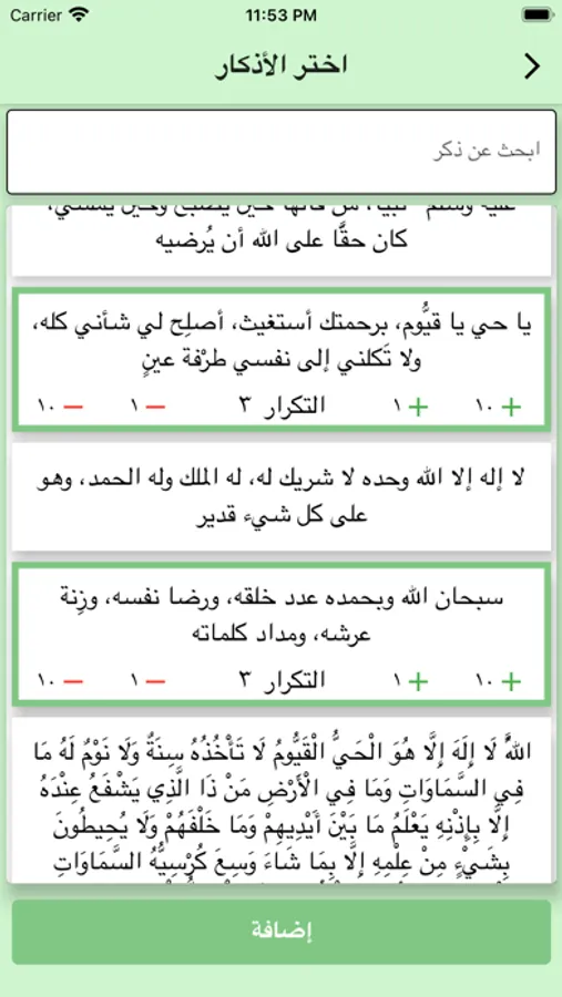 اختر مجموعة من الأذكار وتكرار كل ذِكر وتحدى نفسك و بعض أصدقائك أن يقرؤوها.