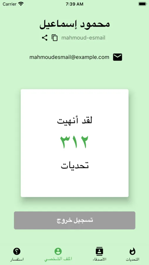 يمكنك إيجاد كود المستخدم الخاص بك في صفحة الملف الشخصي تحت الإسم.