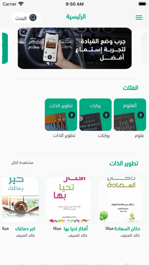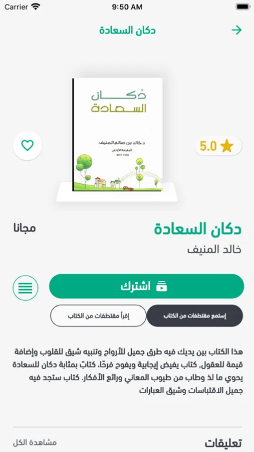 و يوفر لك خدمات متعددة من قدرة الدفع الإلكتروني، إضافة الكتب للخانة المفضلة، و يسمح للمشترك سماع الكتب في خلفية جهازه أي خارج التطبيق نفسه.