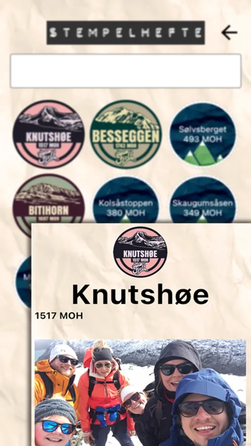 Ved bestigning av en topp, får du stempel fra toppen i stempelheftet ditt. Ved å trykke på stempelet, får du opp informasjon og bilde fra turen. Det er ikke nødvendig å opprette en brukerprofil for å bruke tjenesten, men ved å gjøre det, lages stemplene dine osv på våre servere som backup.
